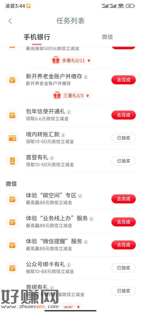 那个绑定公众号的任务找个没有绑过工商公众号的微信就可以完成,前两个中了的大概率还会中