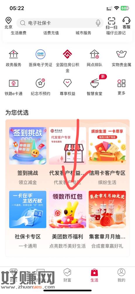 中行,生活,左上定北京,下滑领2元数币红包