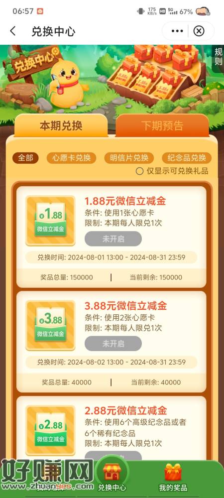 以上任务 纪念品 明信片 心愿卡 都可以兑换中国银行立减金