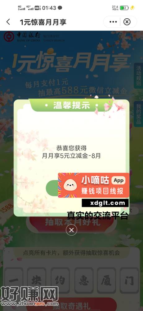 中行飞厦门,乐享夏日,做浏览任务50币可以兑换3张5E卡,还有个1抽5立减金