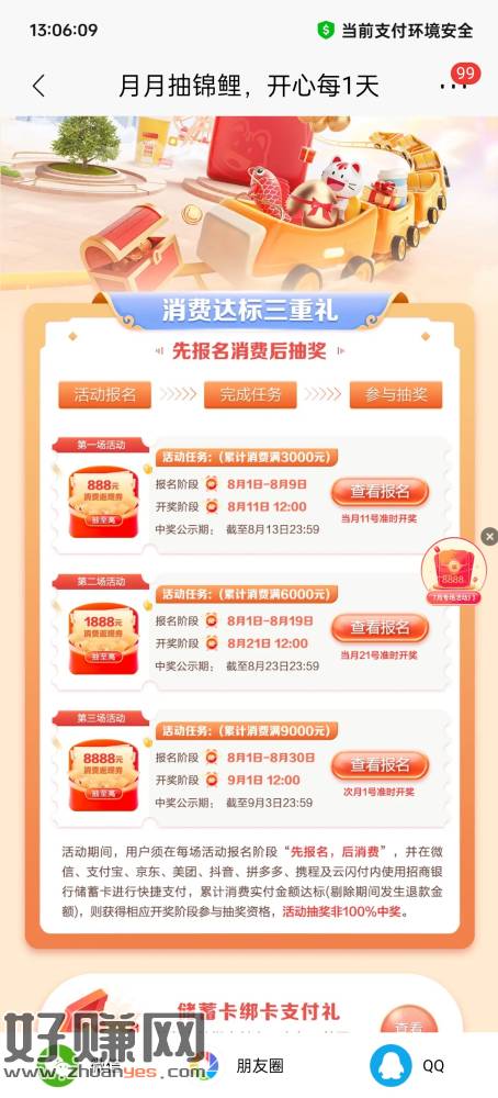 招行 消费返现 报名 余额宝零钱通转9000等开奖