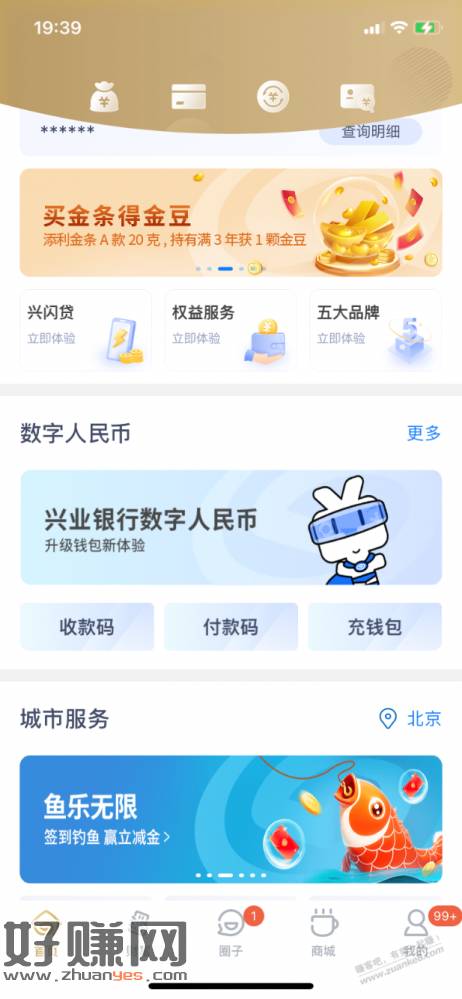 活动路径:兴业银行APP首页中部“城市服务”——Banner滚动图第3个——鱼乐无限