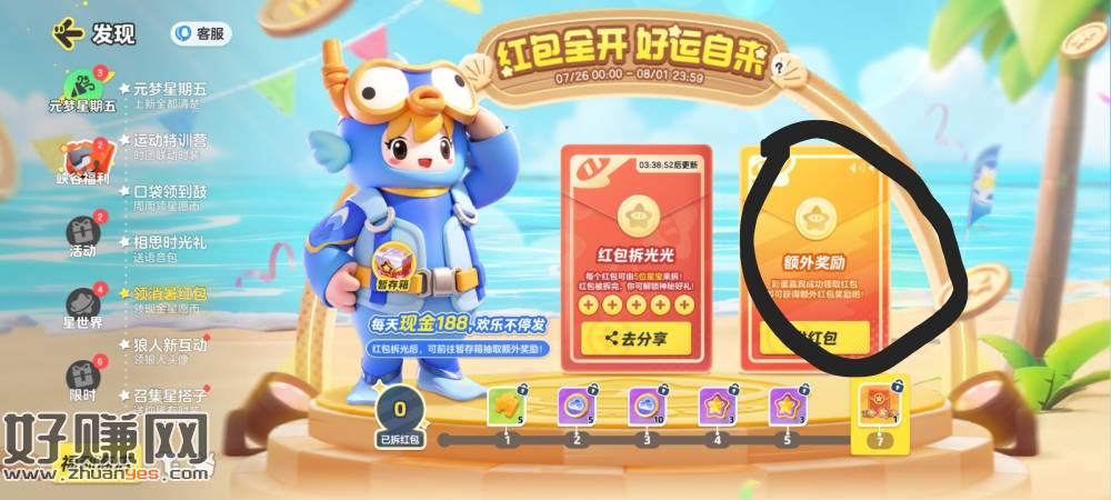 QQ元梦之星 发现星期五消暑红包 发给自己的小号领