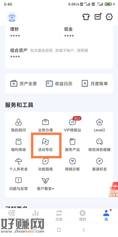 广发易淘金app(开过户的去)~我的~活动专区。下面还有一个