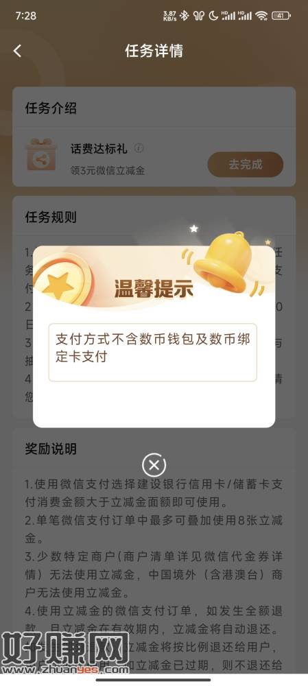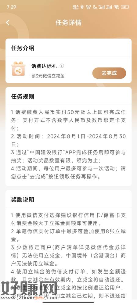 建行任务中心,充50话费领3立减金,限制储蓄卡支付,部分人有