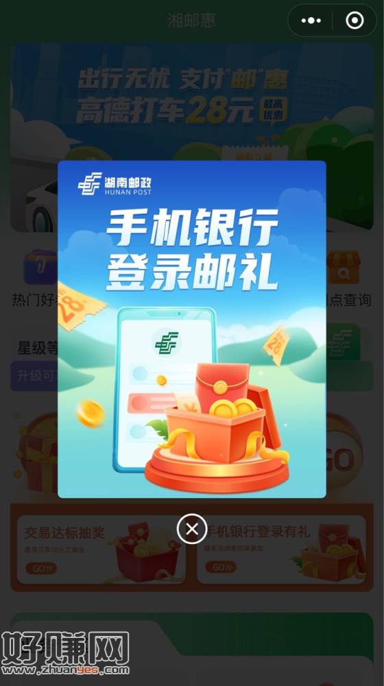 改位置到湖南随便哪个市,点湘邮惠跳转小程序,不用只需要VX定位湖南,ljj限制湖南邮储卡,多号抽 记得抽了大的比如88元才兑换 一个实名好像只能兑换2个微信