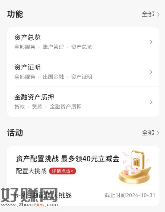 中信搜索资产配置,下拉找到活动< 配置大挑战 >,见面礼,加了企