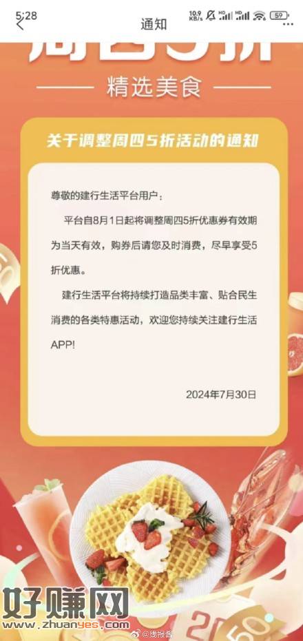 建行生活周四五折也缩水了,目前签到券限量,周五活动取消了