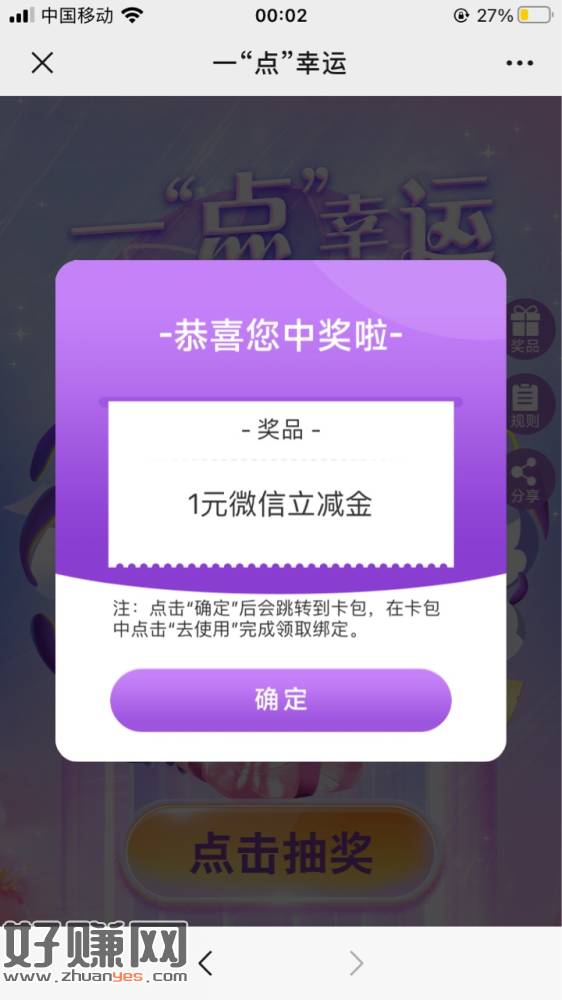 徽商银行微信公众号一点幸运又中了,昨天中了,今天又中1立减,