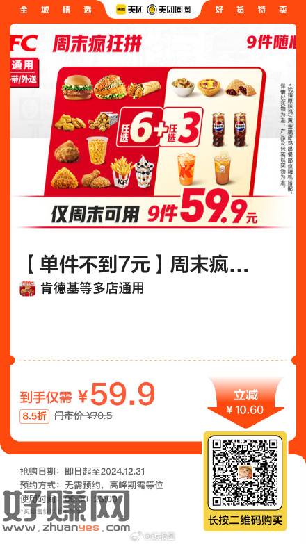 57.9,肯德基|【单件不到7元】周末疯狂拼9件