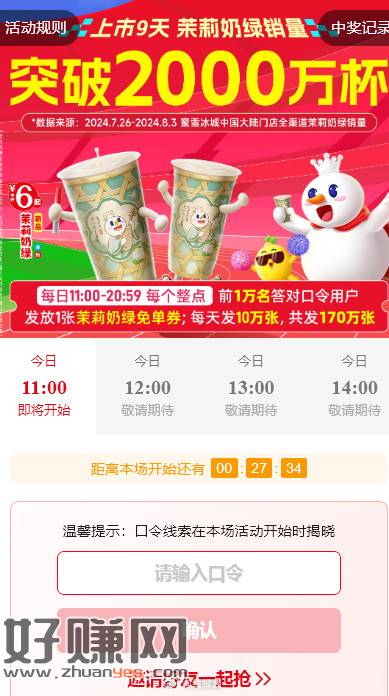 今天的口令预计是:茉莉奶绿销量突破2000万杯