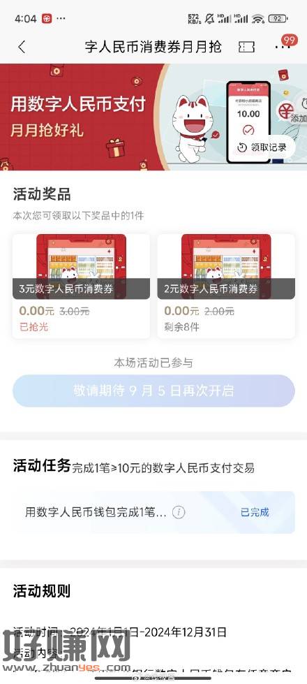 支付宝花呗周边狂欢 必得0.5+2元无门槛红包