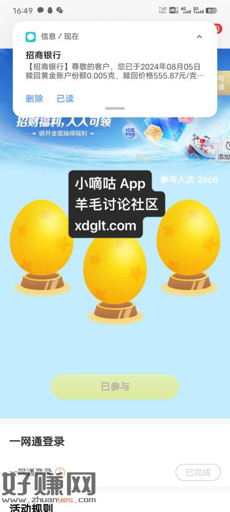 招行88招财一夏,我出黄金红包,电子卡可以兑现