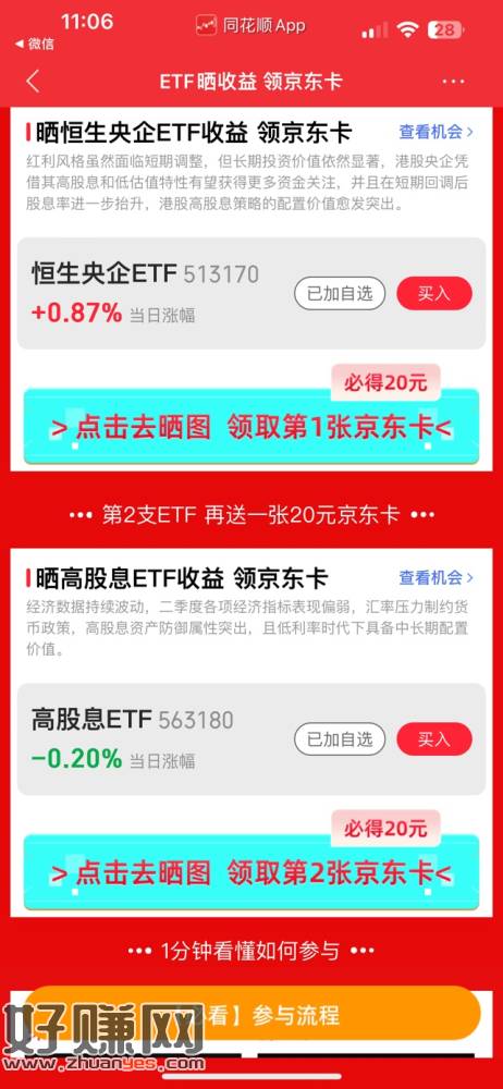 同花顺有股票账户的买一手晒收益 活动页面写的必得
