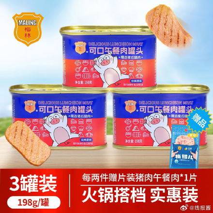 先领39-6券 ,16.9,梅林 午餐肉罐头198g*3罐
