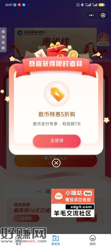 【建行惠省钱抽折扣买16元立减金】新一期!部分人会弹出折扣券->抽取购买价格(大于12.88亓建议别买)->购买后在微信卡包中查看