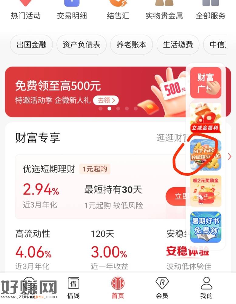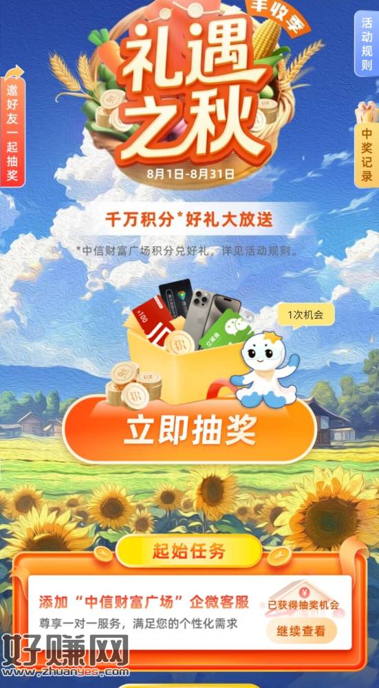 中信首页右侧弹窗积分礼遇中秋,过0点抽,先做任务