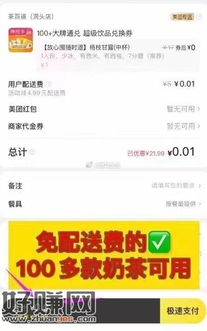 1元红包+美团兔单+鸡蛋卷