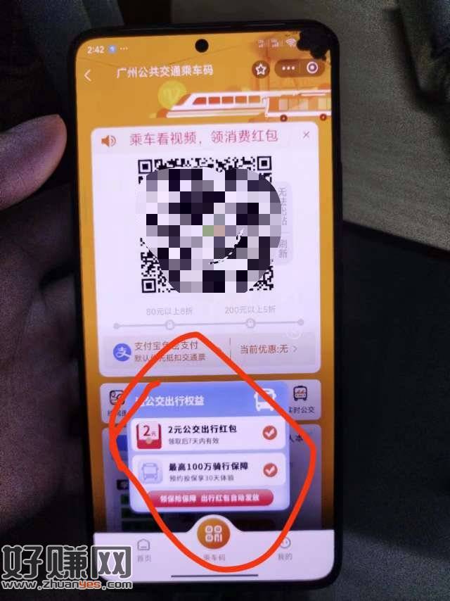 打开支付宝,点出行,位置改广州,然后点公交,点前往使用,然后有红包弹出
