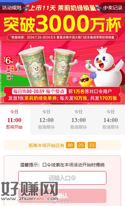 今天的口令预计是:茉莉奶绿 茉莉花香