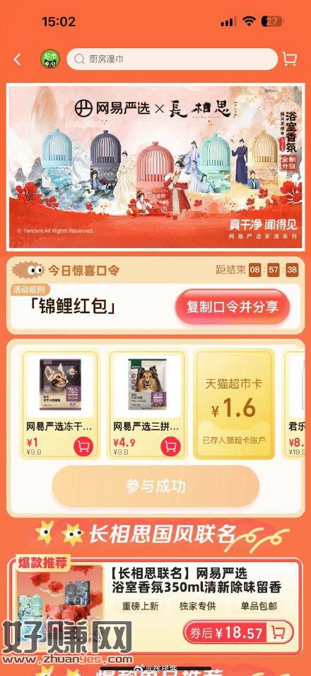 输入【锦鲤红包】15点、21点继续有1.6猫卡加码!