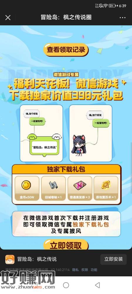 冒险岛大拉小需要50级,解除授权,然后下载。要下载完成,然后点第2张图领取,就会显示头了