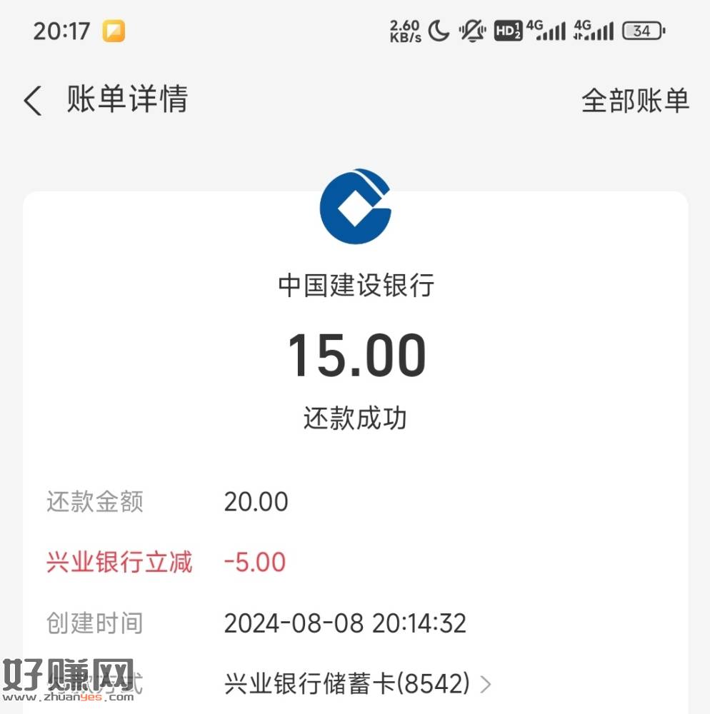 支付宝信用卡还款,兴业运通满20减5,无限哦