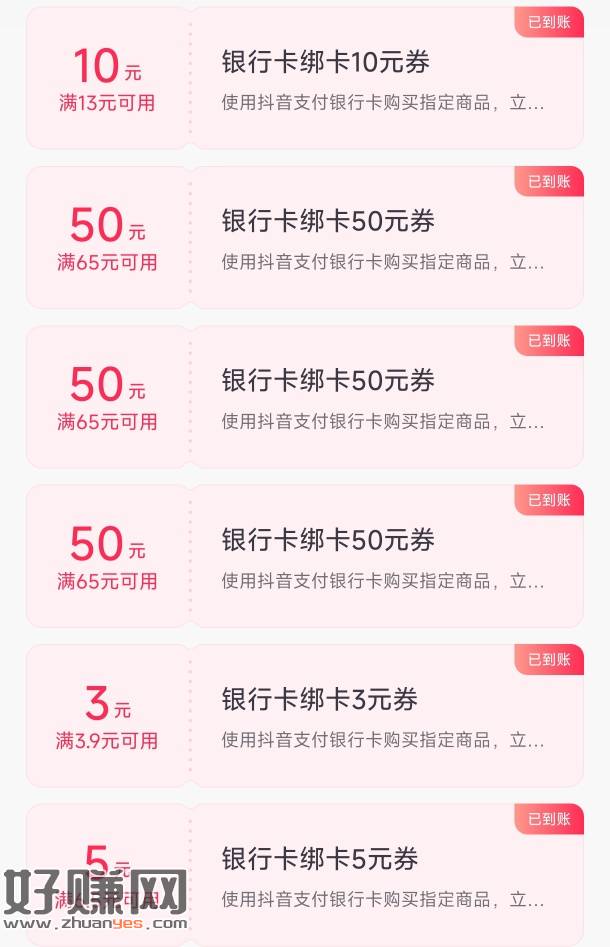试了一下,是真的。在别的地方看见有人说抖音绑一张从没绑过的卡,会跳出65-50的三张券,没想到是真的。