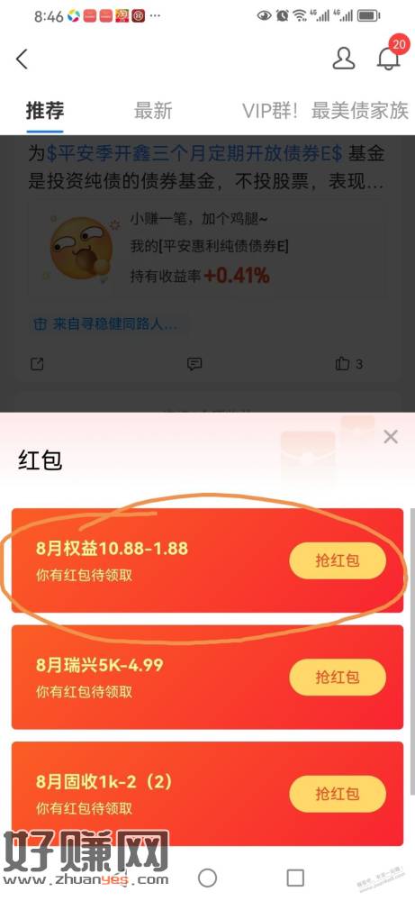 平安基金财富号,右下讨论区,下拉,活动专区