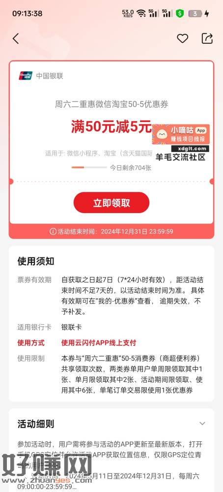 5元毛 云少妇青岛地区用户 领微信50-5券 还xyk无损