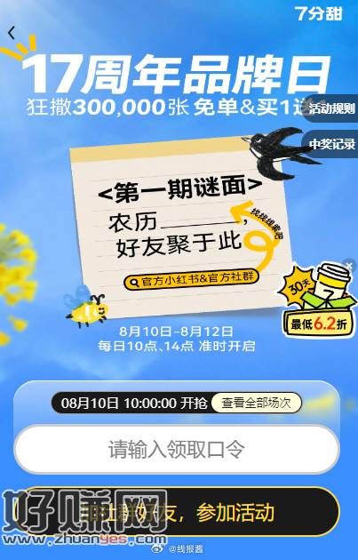 10点,七分甜免单,答案七月初七