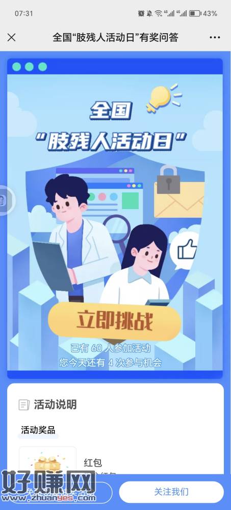 微信全国“残疾人活动日有奖竞猜”5对4答案:第十五次,正确,2010,8月11日,abc多选毕业快去凡科 下面扫码https://mp.weixin.qq.com/s/n6iLw5v3MRqI88zh9x-IEA