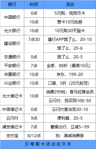 活动入口:掌上生活APP-精选-刷卡有礼(7月31日截止)