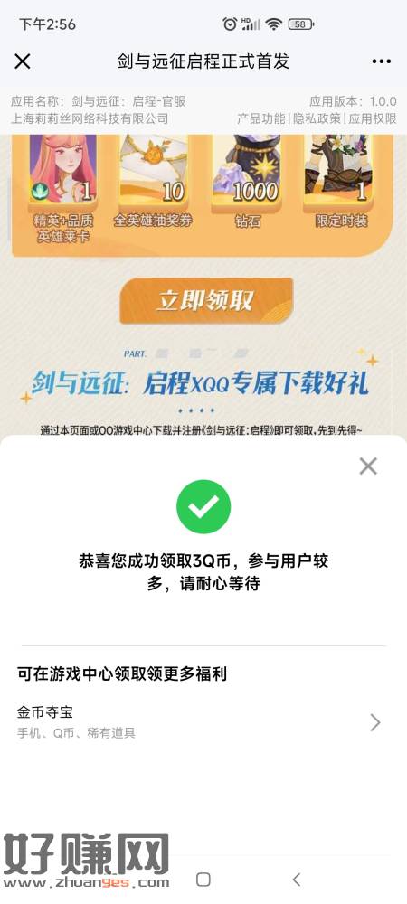 QQ剑与远征 3q币还有,下载安装就能领