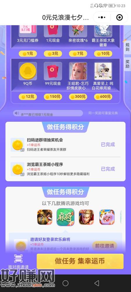1号一毛qv互通活动好几天了,一直有,无聊的去搞一下