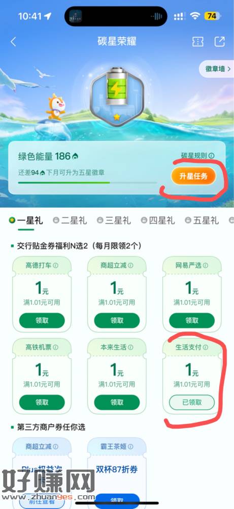 交通银行 直接领 可以做一下升星任务 下个月会升级 直接度