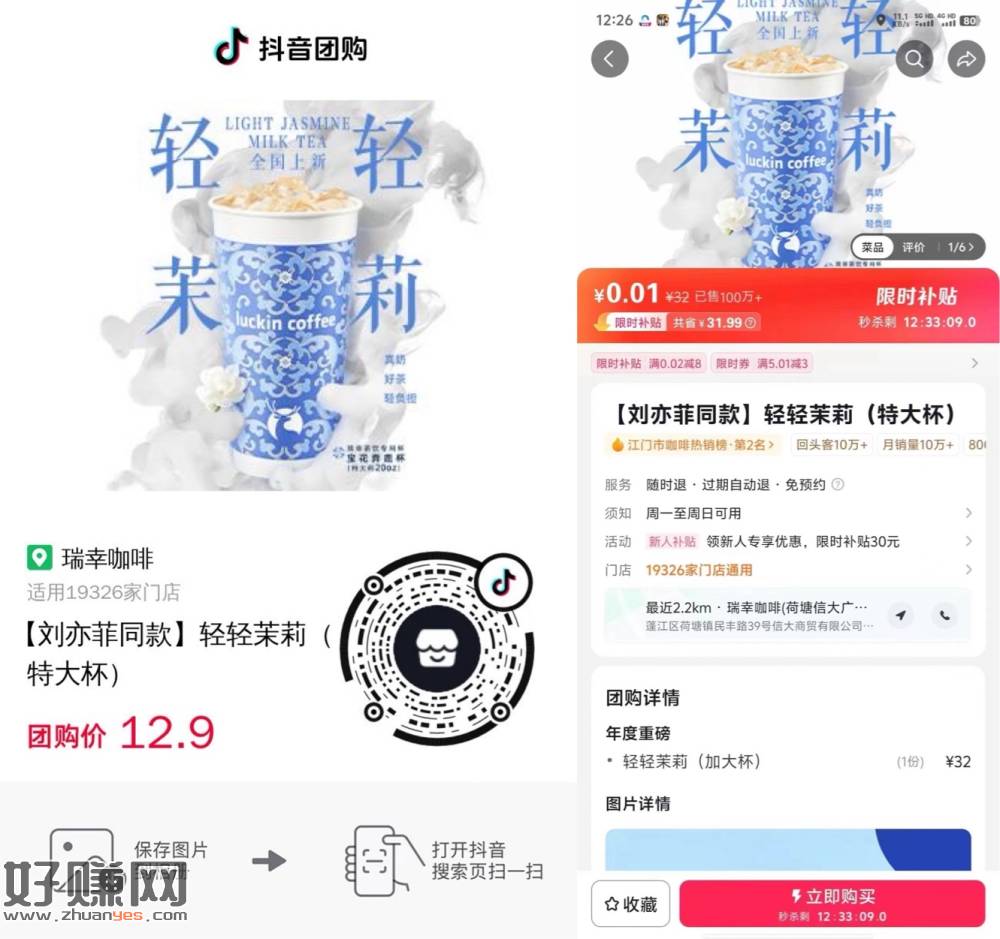 dy扫瑞幸轻轻茉莉大部分0.01