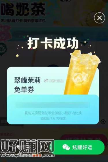 百度打卡抽益禾堂奶茶免单券