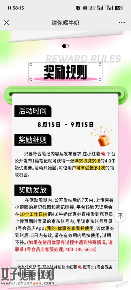 1号店活动 小红薯发帖送牛奶一箱 规则跟京东的差不多