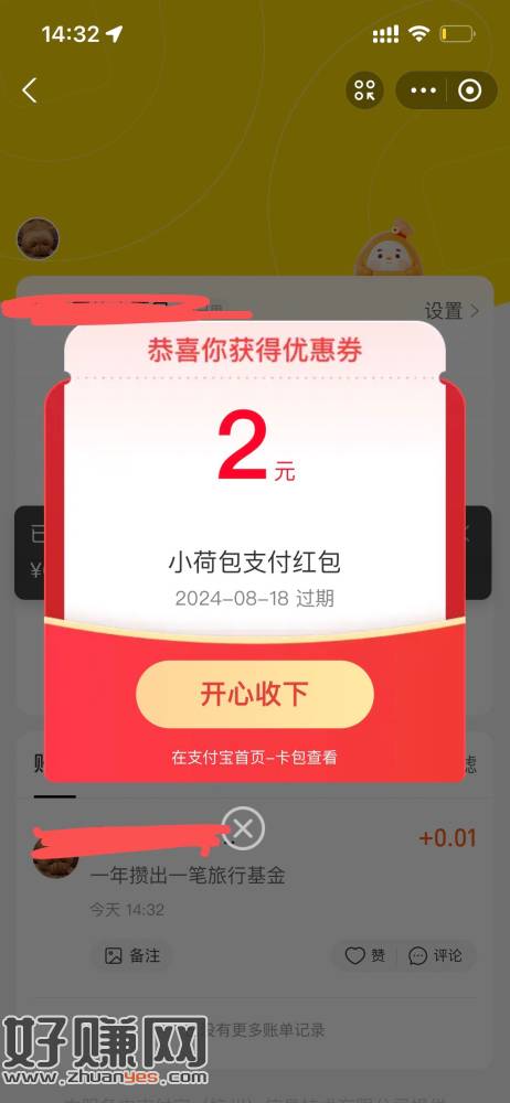 新鲜2元无门槛支付宝红包,1秒搞定!