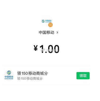 没有积分的去中国移动app充值1元,选微信支付,充完跳150