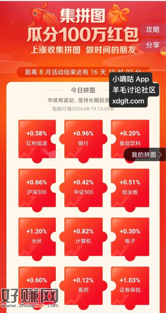 搜索“指数拼图”进去,这会全红,9个点击合成后可领小包。