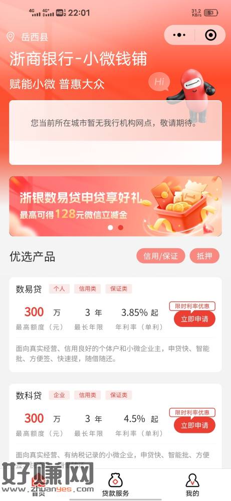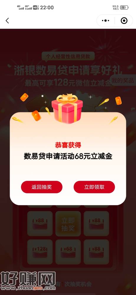 浙商银行小微钱铺小程序申贷享好礼活动,必须有营业执照,申请了就能抽,最低68