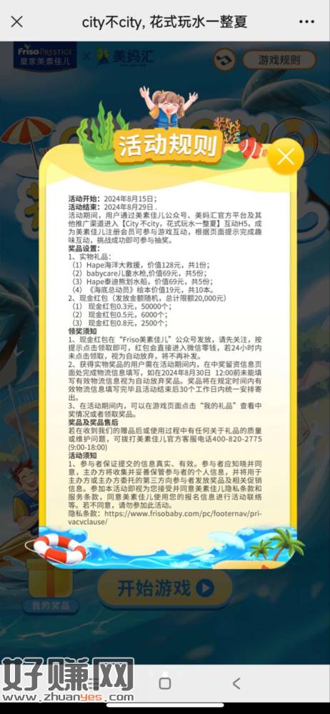 【活动介绍】Friso美素佳儿抽现金红包实物等【活动时间】2024年8月18日-2024年8月29日 【活动规则】完成任务获得抽奖机会【参与方式】微信复制打开https://mp.weixin.qq.com/s/qlP6urOIH6aqKzSZYt9ojg