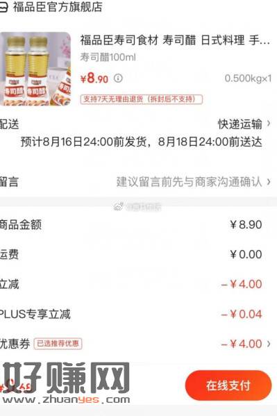 京东0~0.8r撸寿司醋100ml,复制到微信打开!即可参与