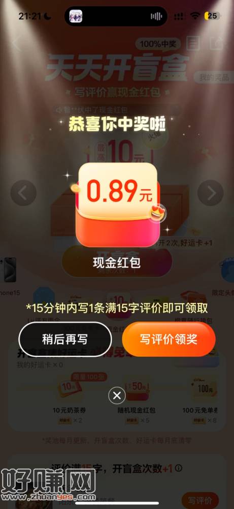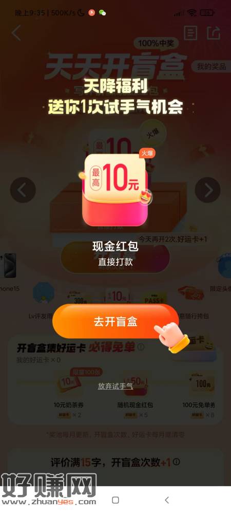 大众点评搜索 天天开盲盒 点进去 弹出图二这样的才有 随机选