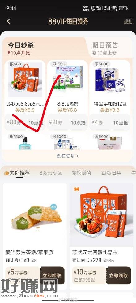 88会员,10点会员页面有8.8大闸蟹