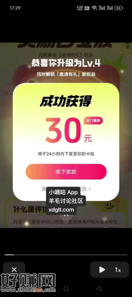 抖音评价有礼得30无门槛红包