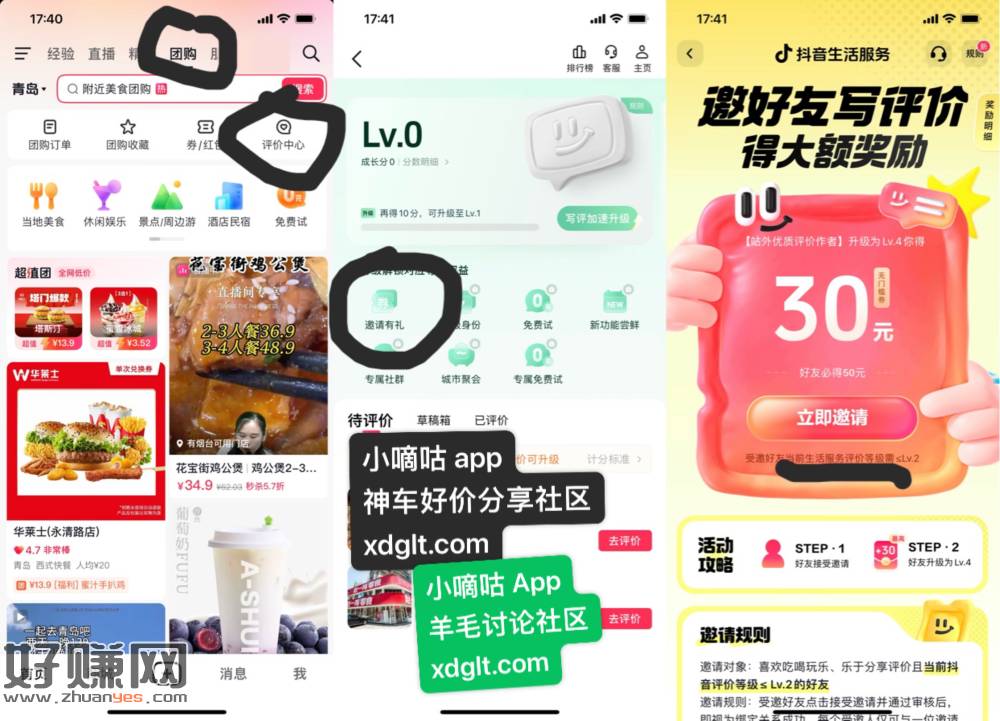 进入抖音团购评价,找到评价有礼活动入口,好像有城市限制