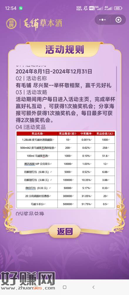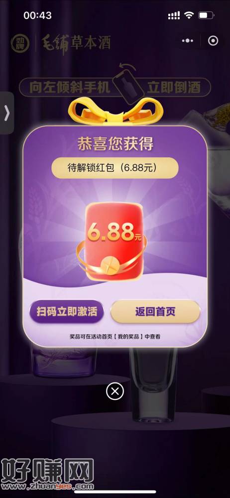 首页活动里的 有毛铺,尽兴聚,点进去抽奖,有红包和酒,抽到红包要扫瓶盖解锁,能找到瓶盖的去玩吧